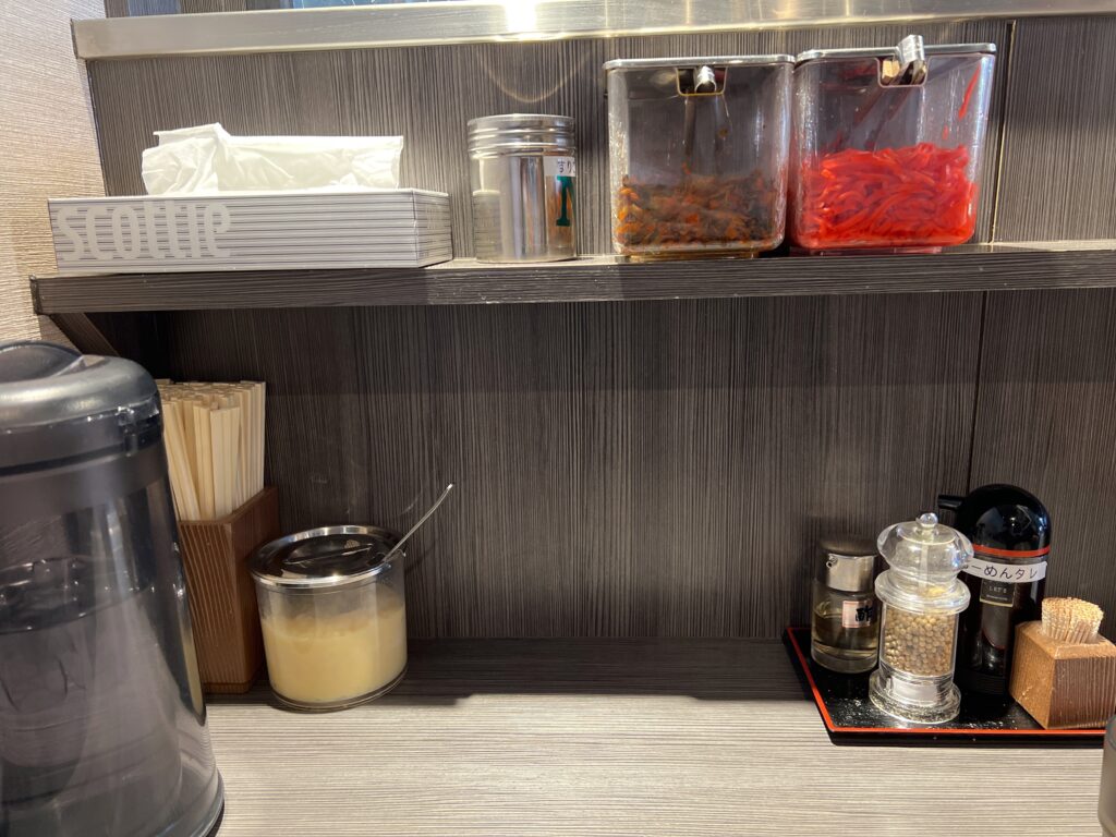 水・レンゲ・ティッシュ等は全てセルフサービスです。