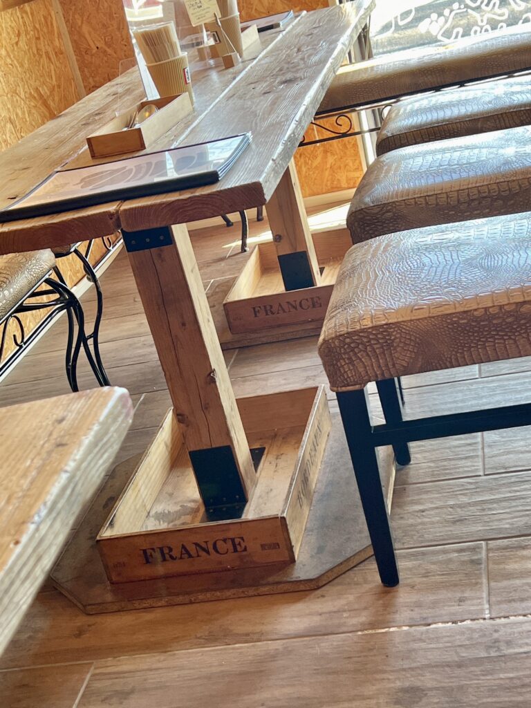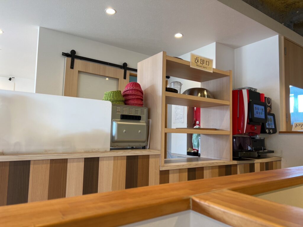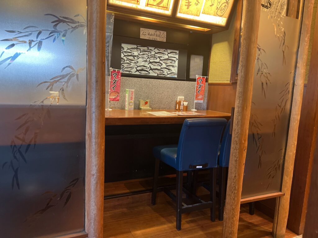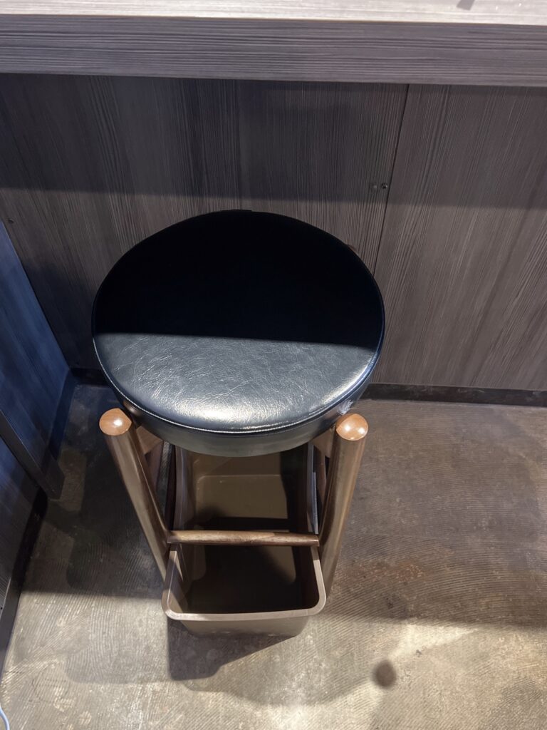 カウンター席の椅子(椅子の下に荷物入れ有り)