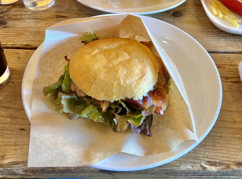 バーガーはかなり肉厚で、かなりボリュームがあります。かぶりついて食べましたが、最初は少し大変でした。