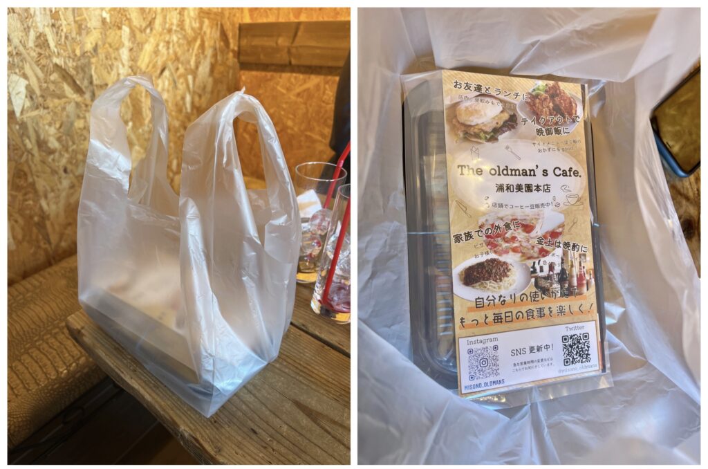 注文の段階から、食べ切れなければポテトを持ち帰りにもできます、と声をかけていただいたので、残ったポテトとピザを持ち帰りでお願いしました。