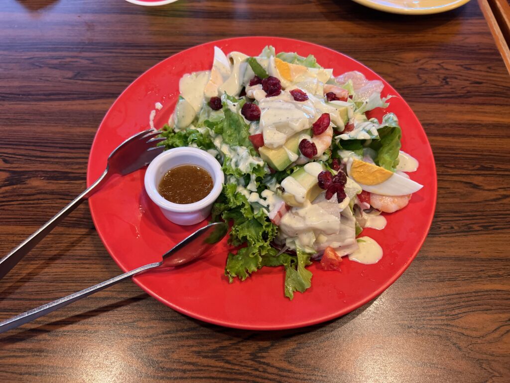 サラダは2〜3人前です。バーガー2種類・サービスコンボ・ポテトセットと一緒に注文しましたが、大人2人で全て食べ切れませんでした。