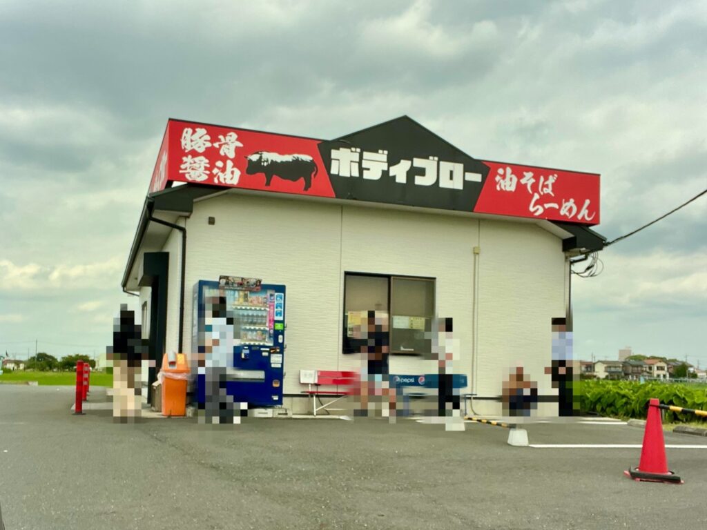 お店の前に約40台分の駐車スペースがありますが、土日の混在時は満車になっていることが多く、駐車場の中で空くのを待っている車がいます。