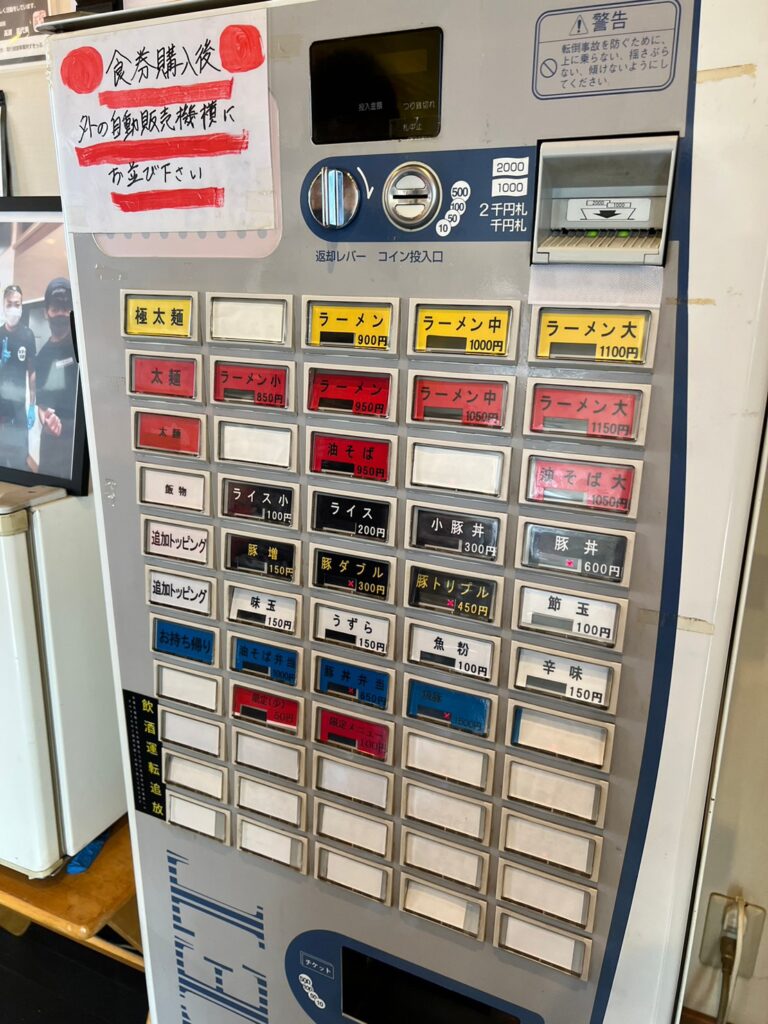 店内が満席の場合、食券を購入してから店外で待ちます。