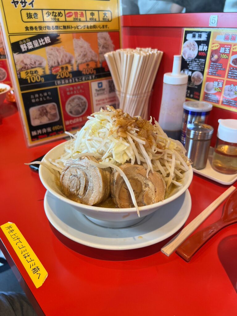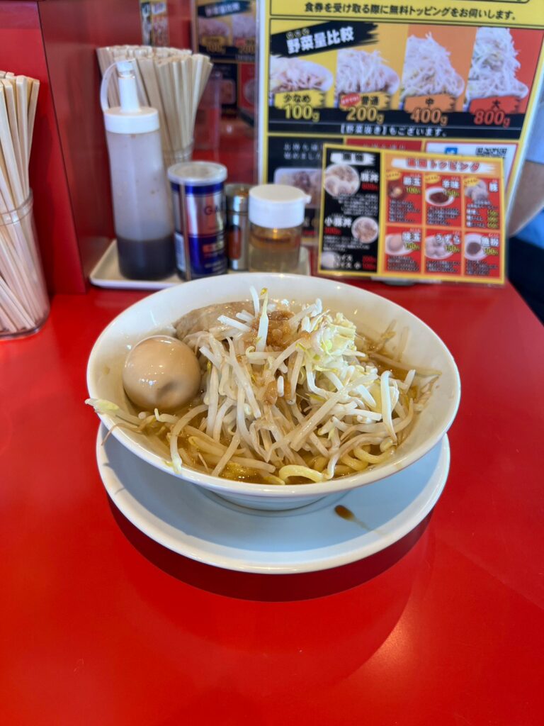 無料トッピング・・・にんにく(普通) + アブラ(普通) + ヤサイ(中400g)