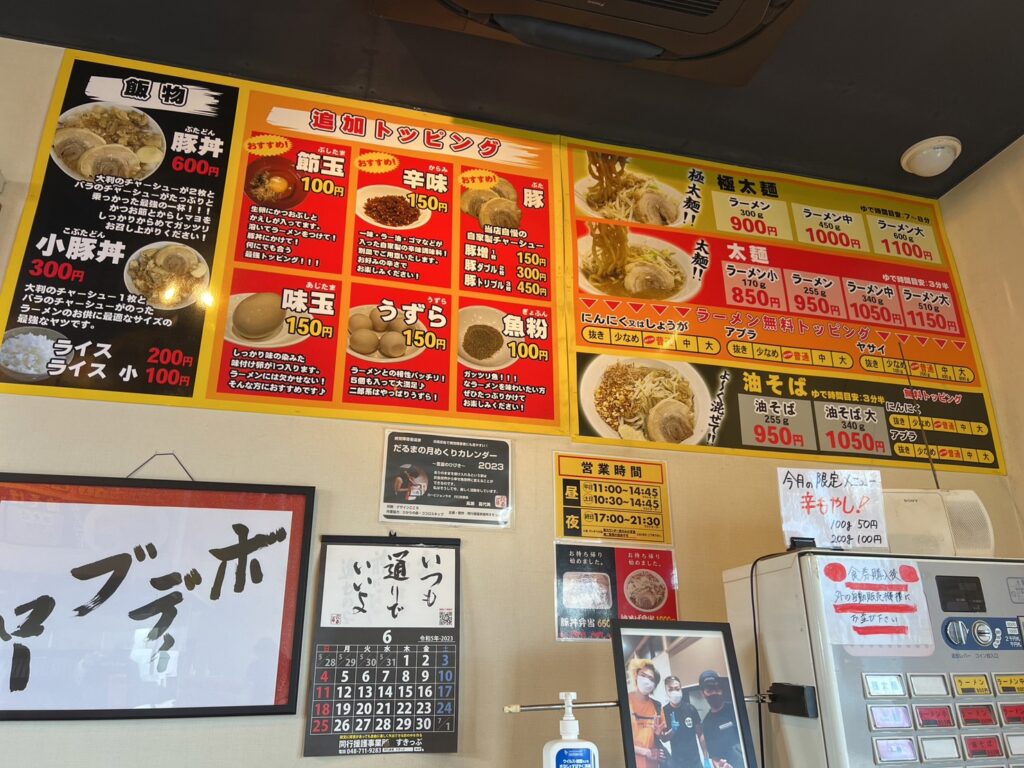 にんにく又はしょうが、アブラ、ヤサイは無料でトッピングを選べます。