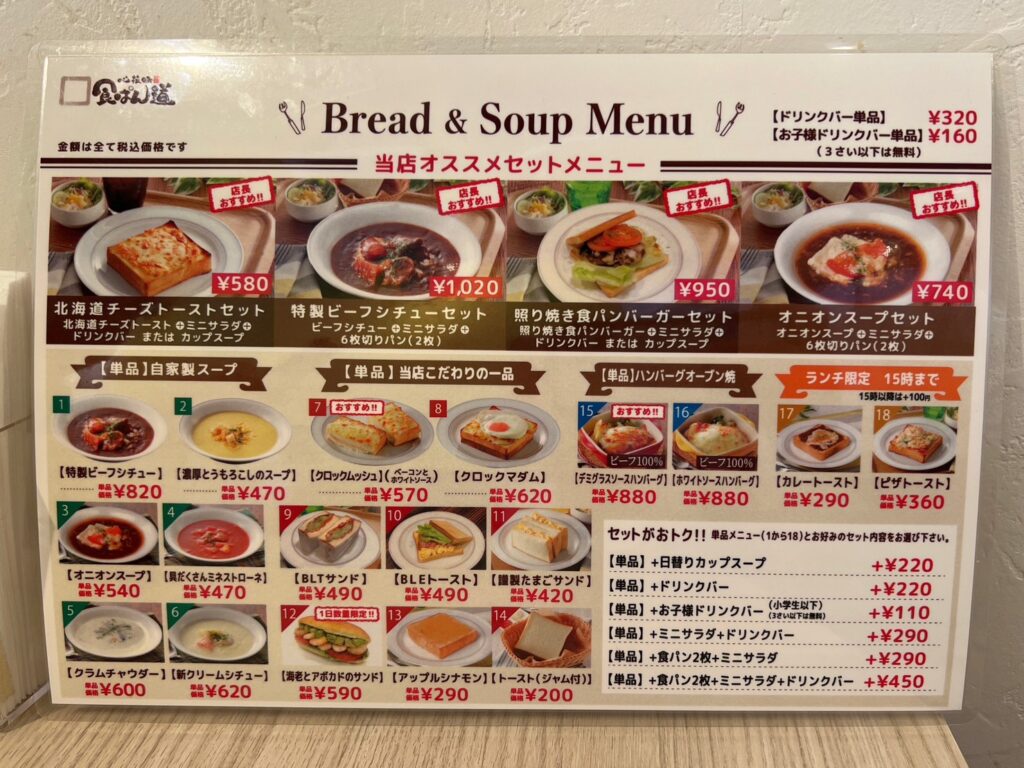ランチの時間帯に行ったため、ランチメニューのみ置いてありました。