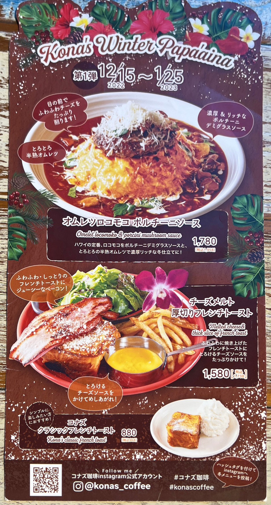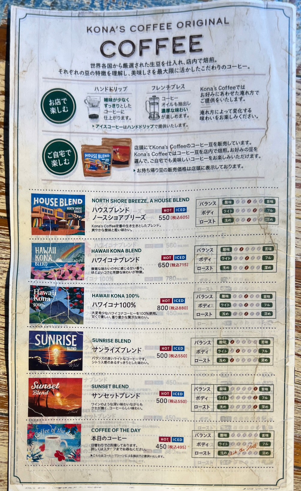 席へ運んできた後、定員さんがミルでコーヒー豆(コナコーヒ)を削ってかけてくれます。