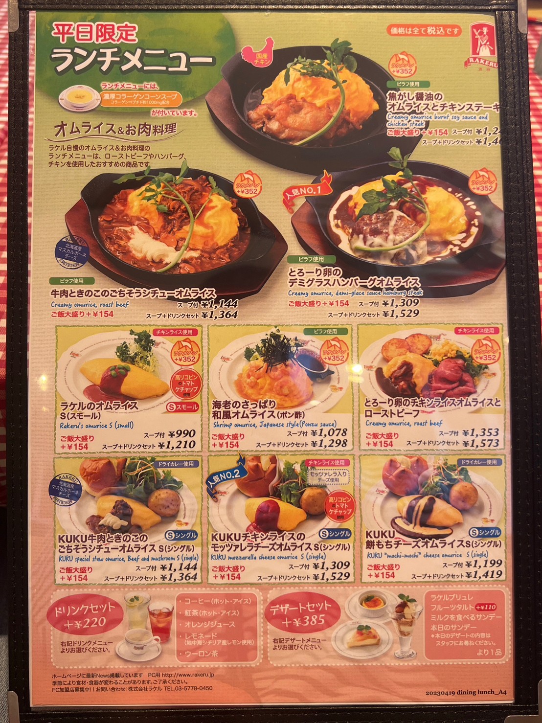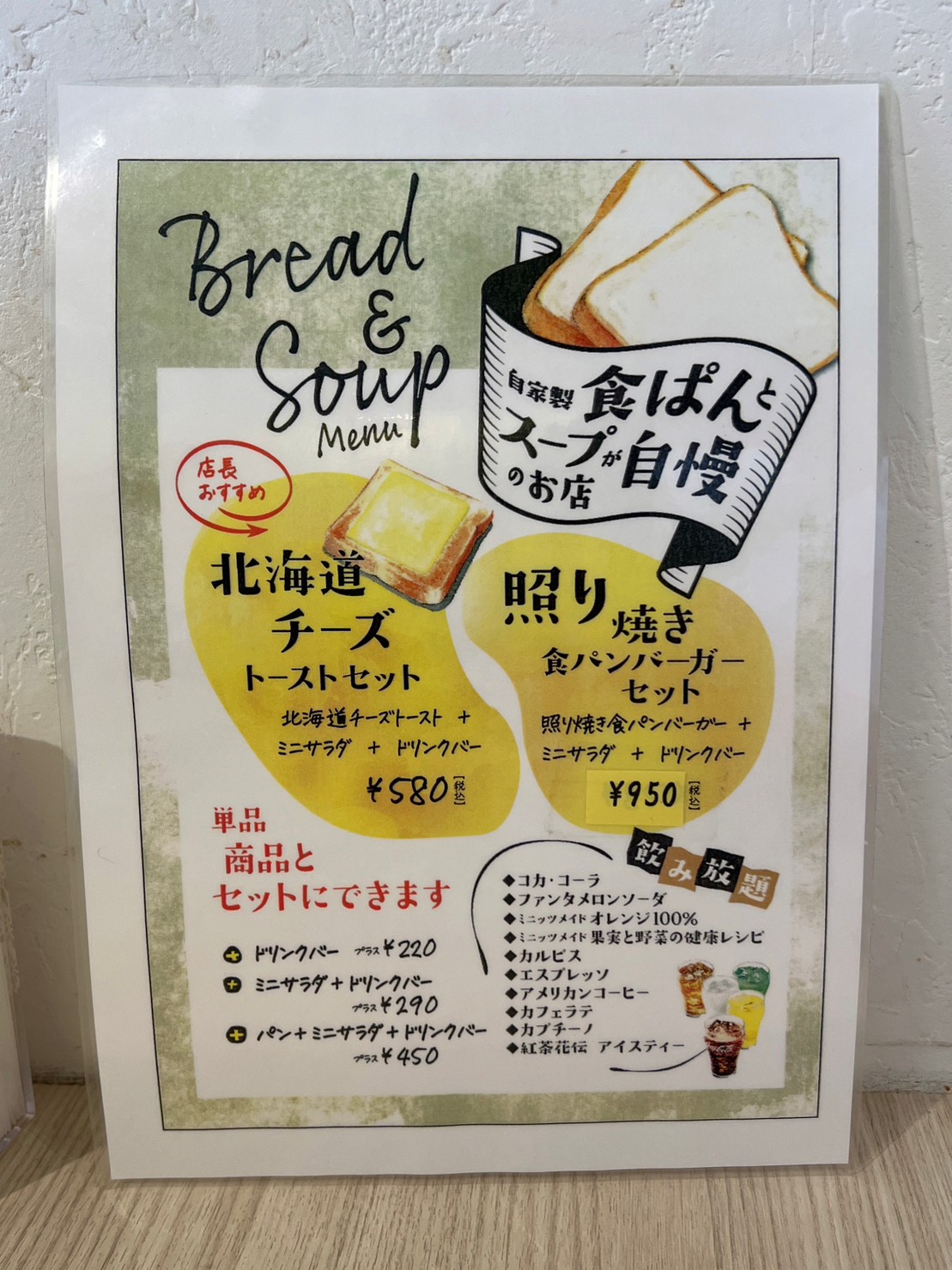 ランチの時間帯に行ったため、ランチメニューのみ置いてありました。